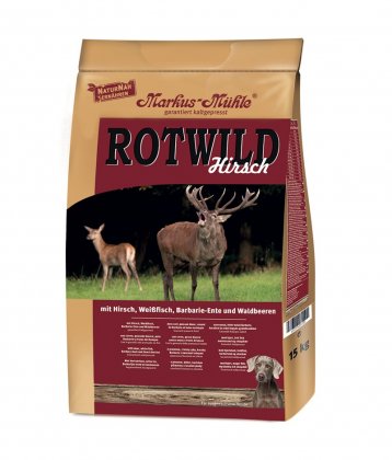 Granule lisované za studena se zvěřinou (jelením masem), kachním masem, masem bělice, výtažkem z mušlí a lesními plody. Rot Wild (Red Wild) je skvělé, voňavé a výživné krmivo se spoustou čerstvého masa a bylinek z přírody, které psům chutná a voní stejně, jako potrava v přírodě. Vyrobeno v Německu.